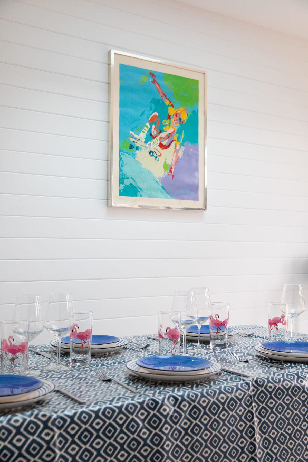 The large dining table is set just opposite the kitchen. Relax with a couple of drinks at the kitchen bar while food is cooking, then set the table and enjoy a long leisurely meal with loved ones.