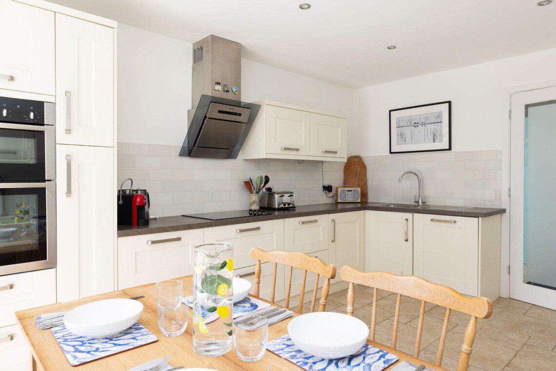 The fully equipped kitchen has everything you need for cooking at home, from family breakfasts to evening dinners.