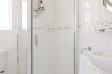The property features three bathrooms in total: one en-suite, one with a walk-in shower, and one with a full-size bath — perfect for busy mornings or post-beach wind-downs.