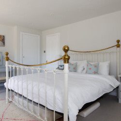 At the top of the stairs, you’ll find an impressive landing space, with a further snug lounge area, TV and desk. A total of four bedrooms spread across the first floor.