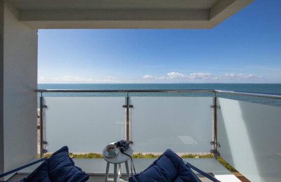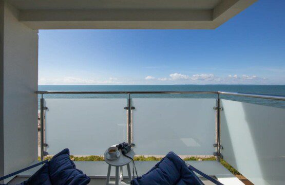 Step out to the private balcony to catch some fresh air and gaze at the stunning panoramic view of the beach and the sea.