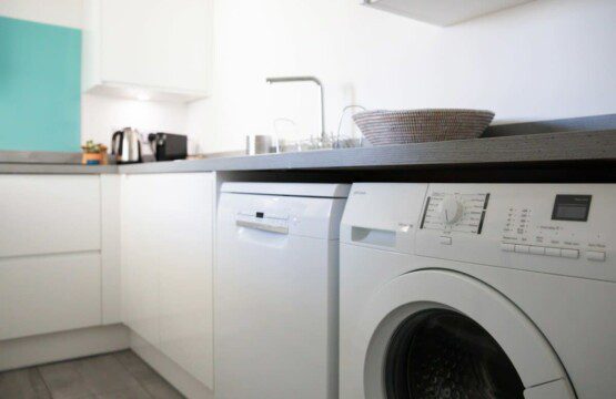 It follows the home’s contemporary design while offering modern cooking appliances and spacious countertops. Feel free to prepare delicious meals if you choose to dine in the apartment.