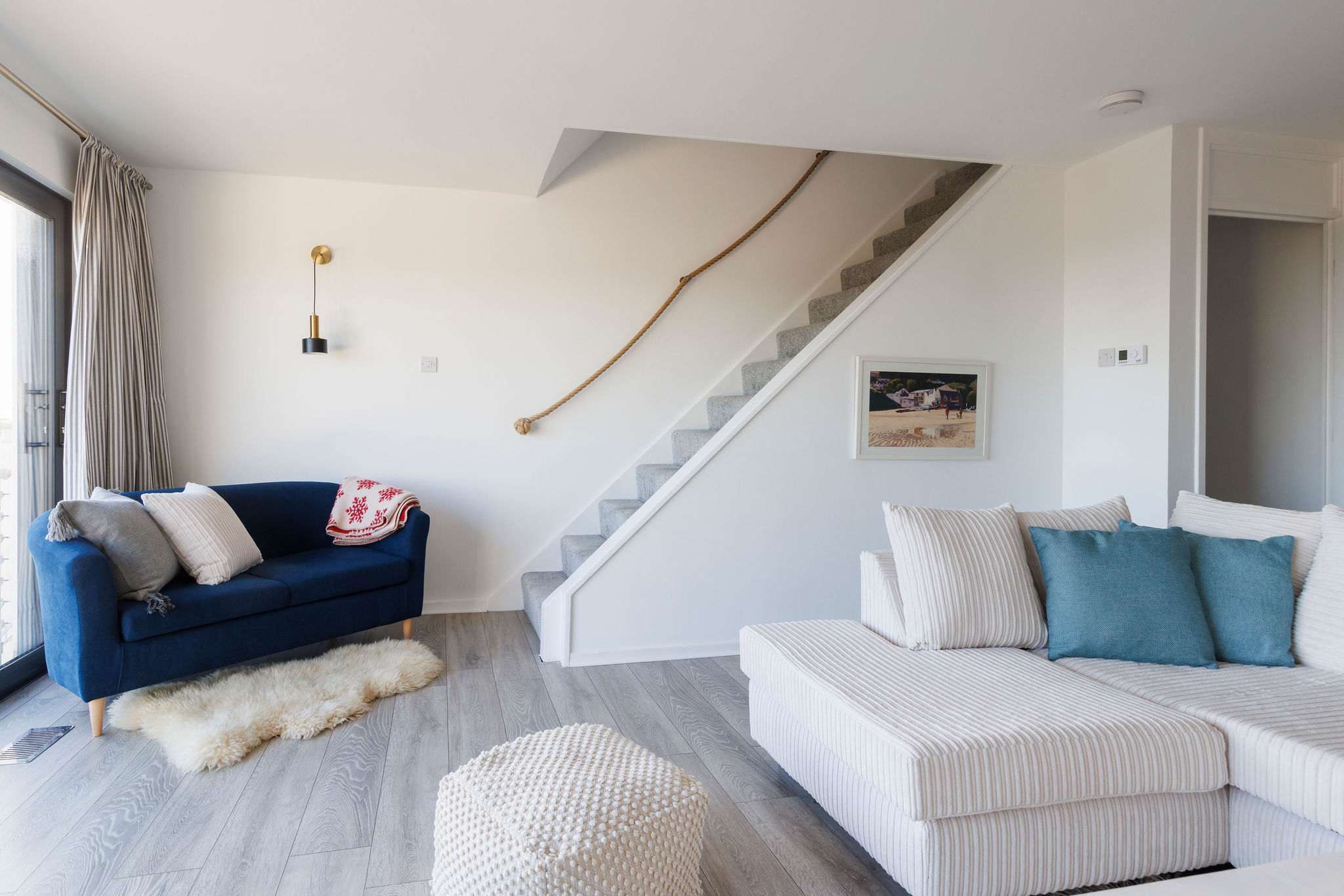 Relax in the bright and airy lounge, featuring a brand new L shape Sofa, further 2 seater sofa and bean bag, a Smart TV, and thoughtful touches for ultimate comfort.