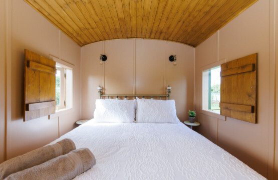 The carriage features vibrant, vintage-inspired décor and modern amenities, creating a unique and cosy atmosphere. The living area can be converted into an additional sleeping space, making it perfect for families.