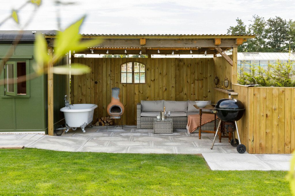 Enjoy the peaceful countryside surroundings from your own private, undercover courtyard with seating, BBQ and even bath tub.