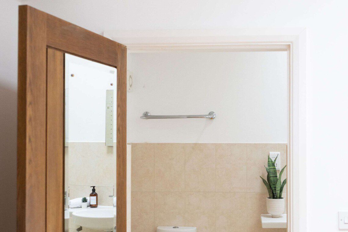 The room is accessed via a shared entrance hall with the neighbouring ensuite room, Clover. Both rooms have their own private, lockable doors, ensuring privacy while sharing the entrance space.