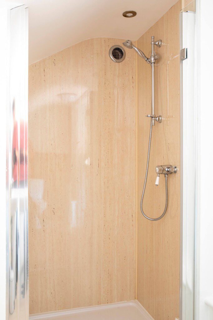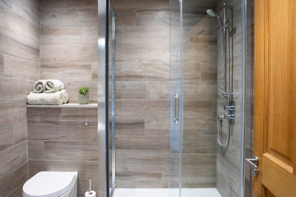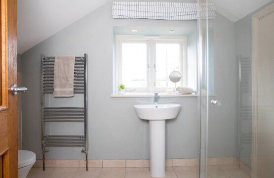 Ascend to the attic bedroom, which features a king-size bed for a restful night’s sleep. This room also includes its ensuite shower room, providing added privacy and comfort.
