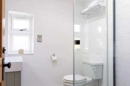 ✔ Bedroom 1: King room with wardrobe, dressing table and drawer space, plus en-suite with shower, WC and sink.