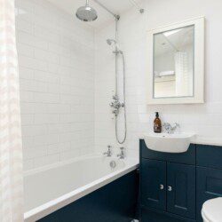 ✔ Family bathroom with bath, shower (over bath), WC and sink.