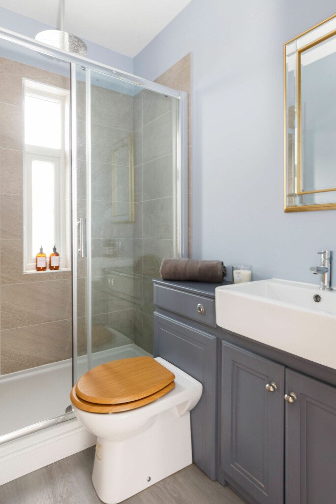 Enjoy the luxury of a spacious walk-in shower in our well-appointed bathroom.