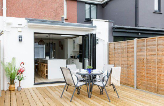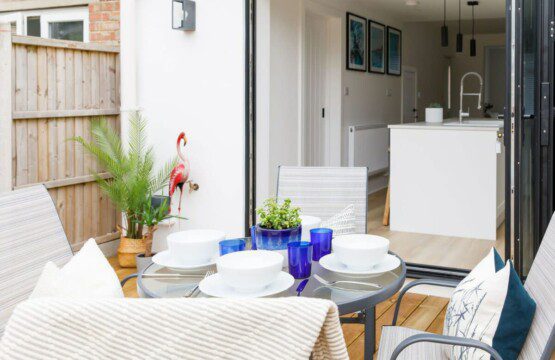 Open up the bi-fold door and head out from the kitchen to a perfectly manicured outside space. With decking and garden furniture, it’s the perfect spot to enjoy the sunshine with a cold drink and good friends.