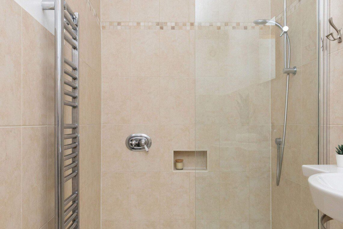 The private ensuite bathroom is a good size, with spacious walk in shower.