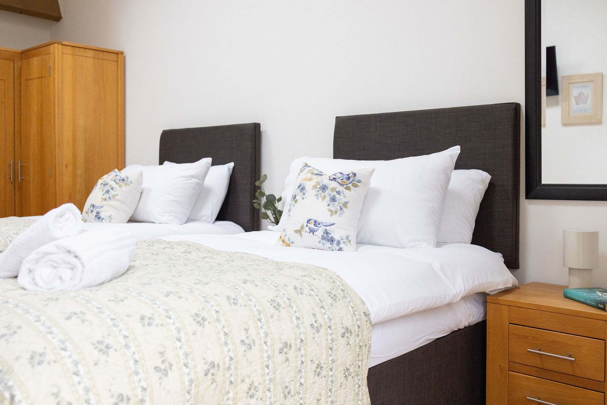 The bedroom is set up as a super king by default, which can be arranged as a twin on request.