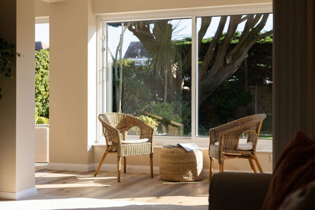 The cosy lounge offers comfy seating, soft lighting and a smart TV – the perfect spot to unwind after a day exploring the coast.