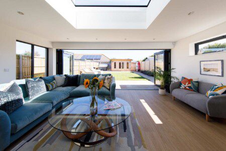 The ultimate space to unwind and relax! Open up the bi-fold doors and let the sea breeze in while you relax on the huge, designer sofa.