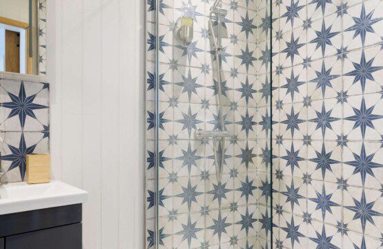The surprisingly spacious ensuite bathroom features a huge walk-in shower, large mirror, WC and sink. The perfect place to freshen up after a day at the beach or before heading out for dinner.