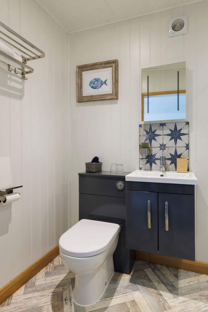 Step inside to discover a beautifully decorated and furnished cabin with stylish king bedroom, a comfortable living area with smart TV, and well-equipped kitchen featuring a breakfast bar for casual dining. If you’re working remotely, there’s a dedicated desk space for you to stay productive.