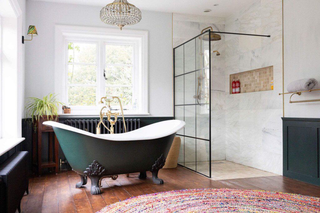 Main Bathroom: Featuring a stunning freestanding bathtub, rainfall shower, and luxury fittings