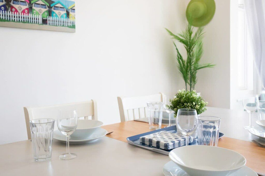 Serve your meals at the beautiful Hamptons style dining table with seating for eight, or on a sunny day, open up the glass doors to create a seamless indoor/outdoor space and eat together on the decked front garden while you listen to the sounds of the waves.