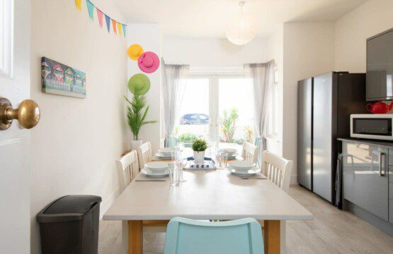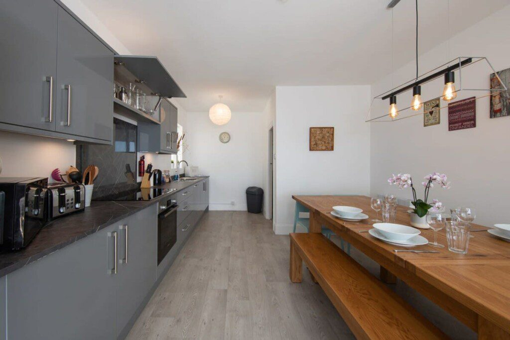 Serve your meals at the beautiful Hamptons style dining table with seating for eight or on a sunny day, open up the glass doors to create a seamless indoor/outdoor space and eat together out in the decked front garden while you listen to the sounds of the waves.