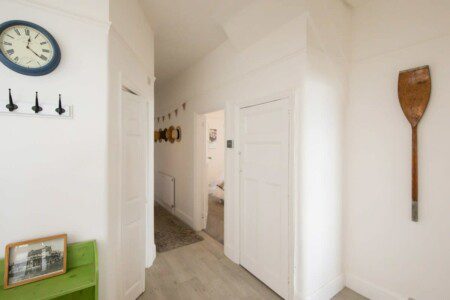 Two spaces are available at the back of the property by the garage. The driveway is 2.44 metres wide at its narrowest, it’s fine for normal cars but may be too tight for anything larger.