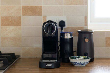 The modern kitchen is fully equipped with modern appliances making mealtimes a breeze.