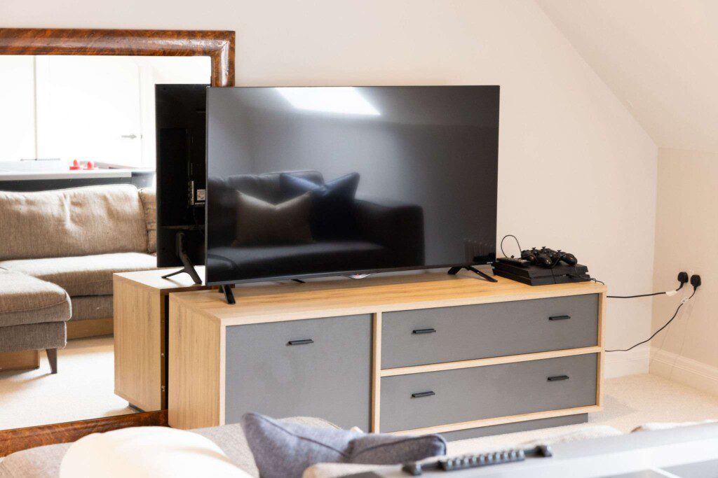 ✔ Games room: Air Hockey table, PlayStation 4, 55″ Smart TV & seating for 6