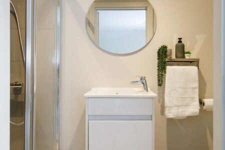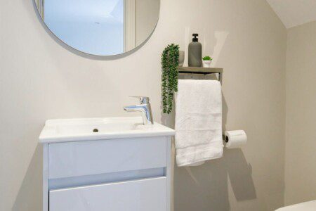 Besides the ensuite bathroom of the master bedroom, another inviting full bathroom caters to the second bedroom and the living area. Soft towels and toiletries are provided for all guests.