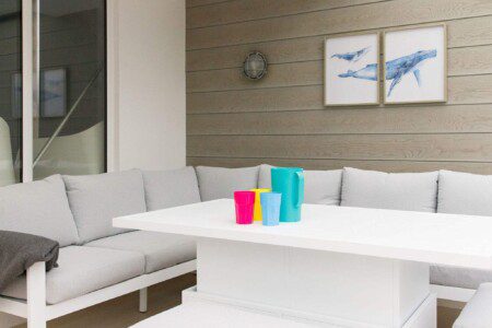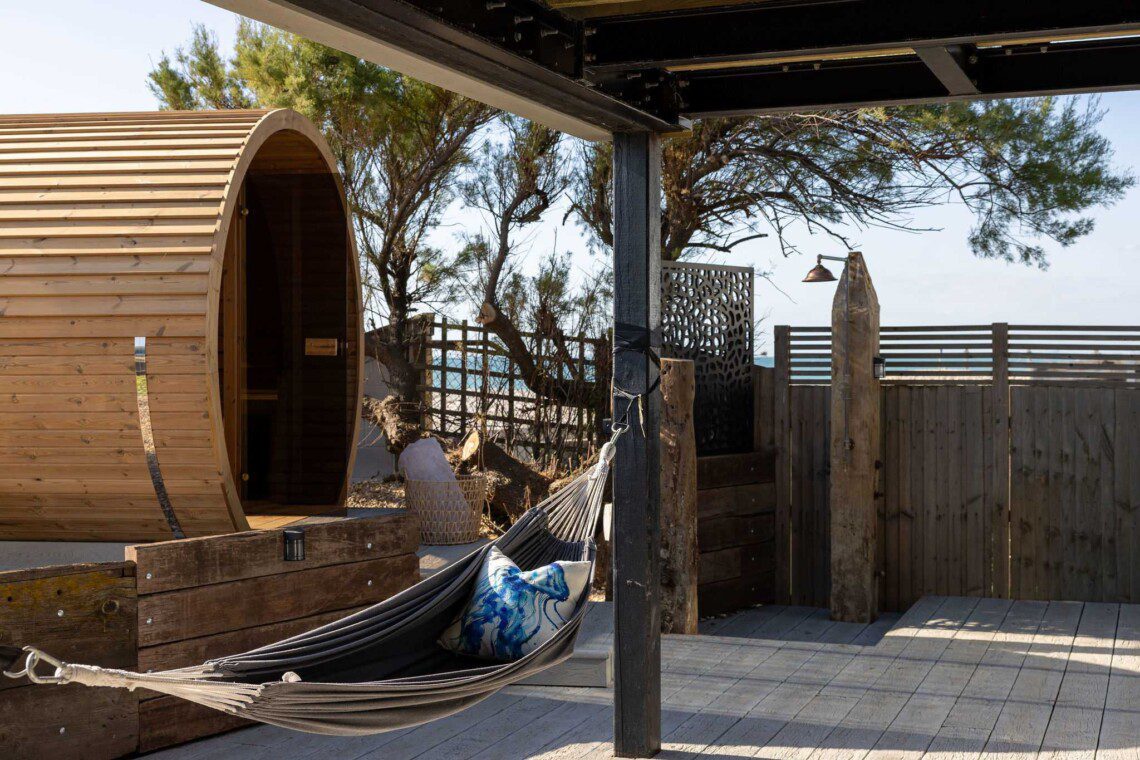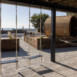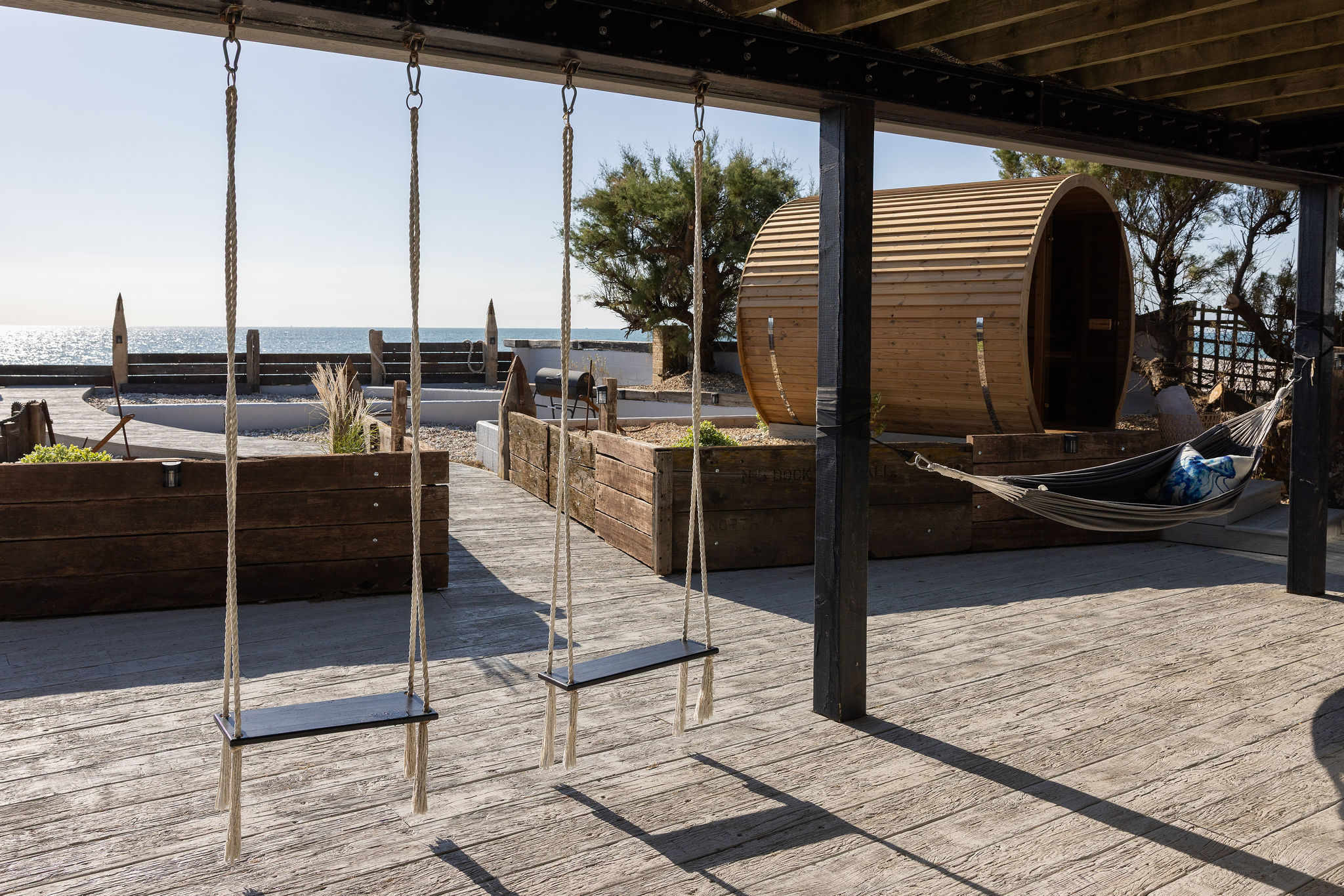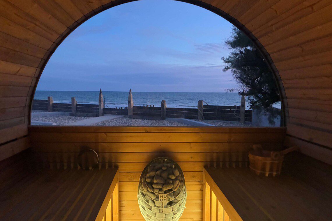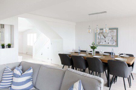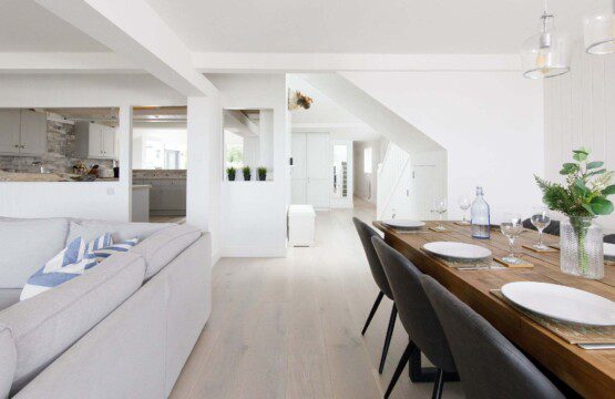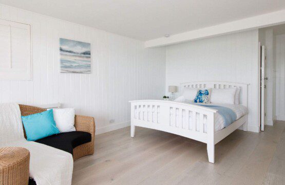Inside, crisp white interiors and floor-to-ceiling windows frame the coastline, while an open-plan kitchen, elegant dining area and cosy lounge are perfect for relaxed gatherings. Whether you’re enjoying a dawn swim, a sauna after a blustery walk, or simply watching the tide roll in from the balcony, this is coastal living at its most indulgent.