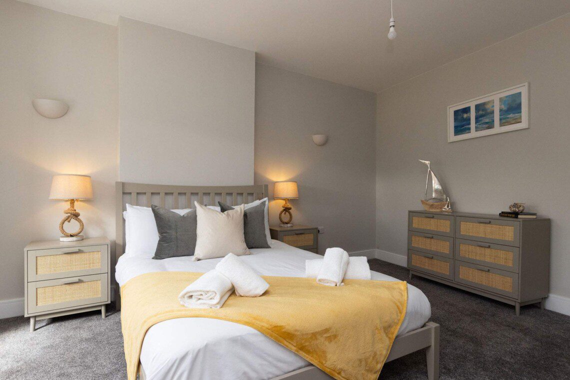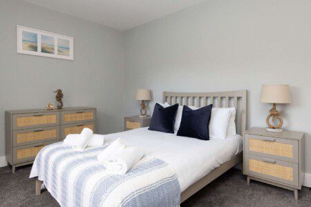 The home has five beautiful bedrooms, all made up and ready for your stay with luxurious bedding, pillows and linen. One double bedroom is located on the ground floor, leading off from the living room. Head upstairs to find four further bedrooms.