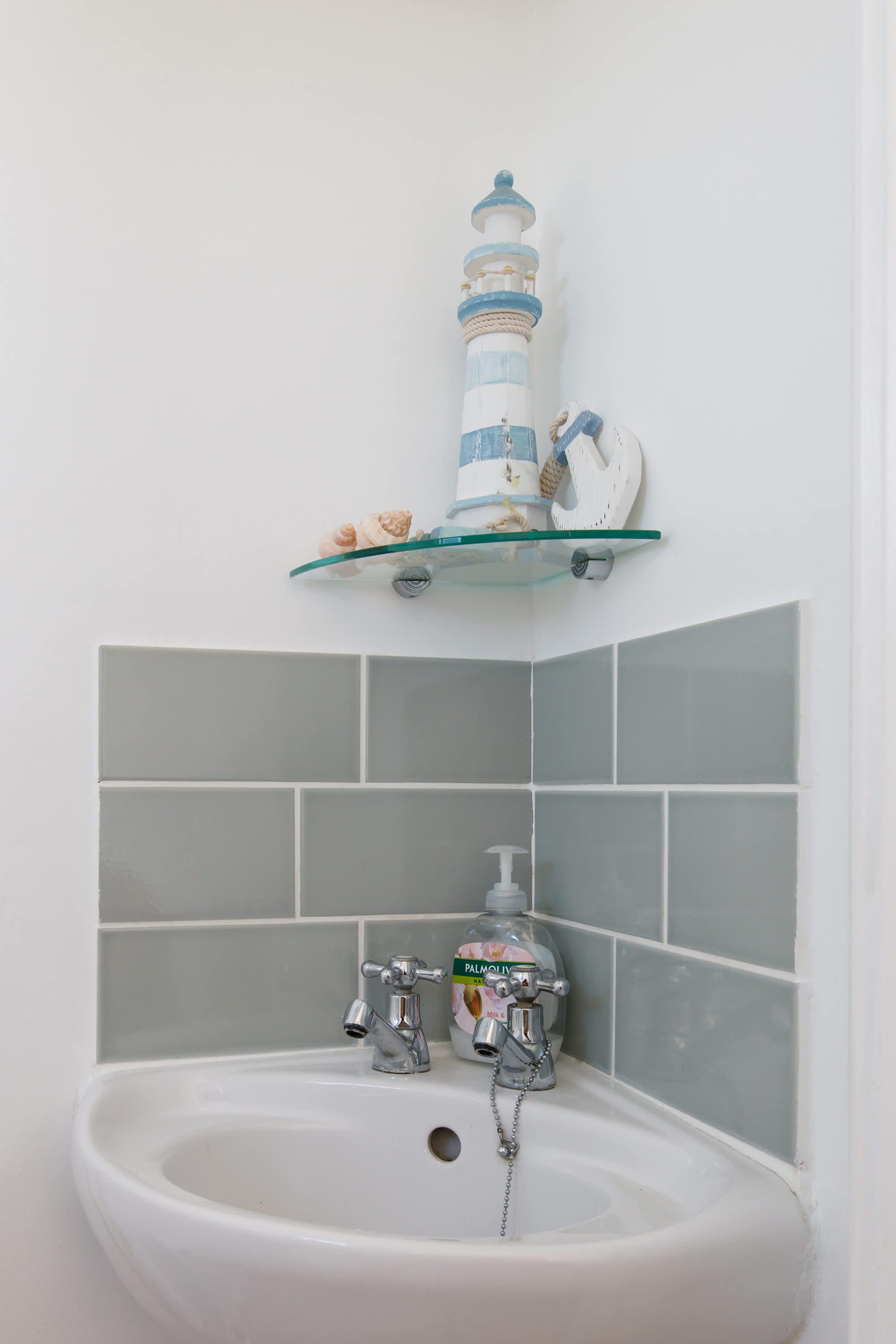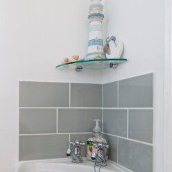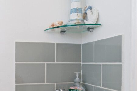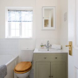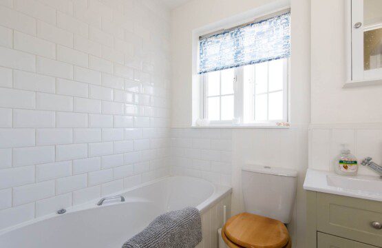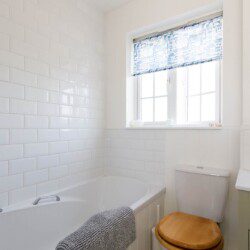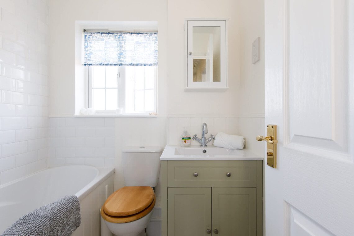 The family bathroom is clean and bright, stocked with towels and essential toiletries. The perfect place to freshen up after a day at the beach.