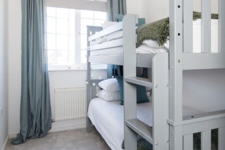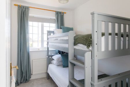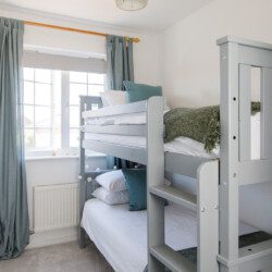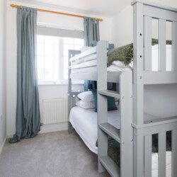 The two double rooms have built-in wardrobes, bedside tables, reading lamps, hair dryers and mirrors. The cosy bunk room is perfect for siblings, with both blinds and curtains to keep out the light.