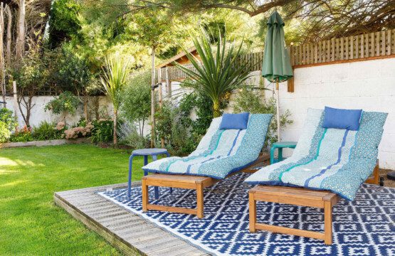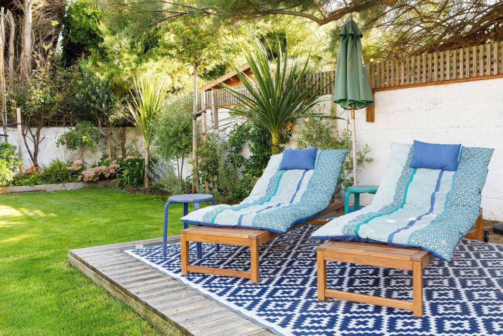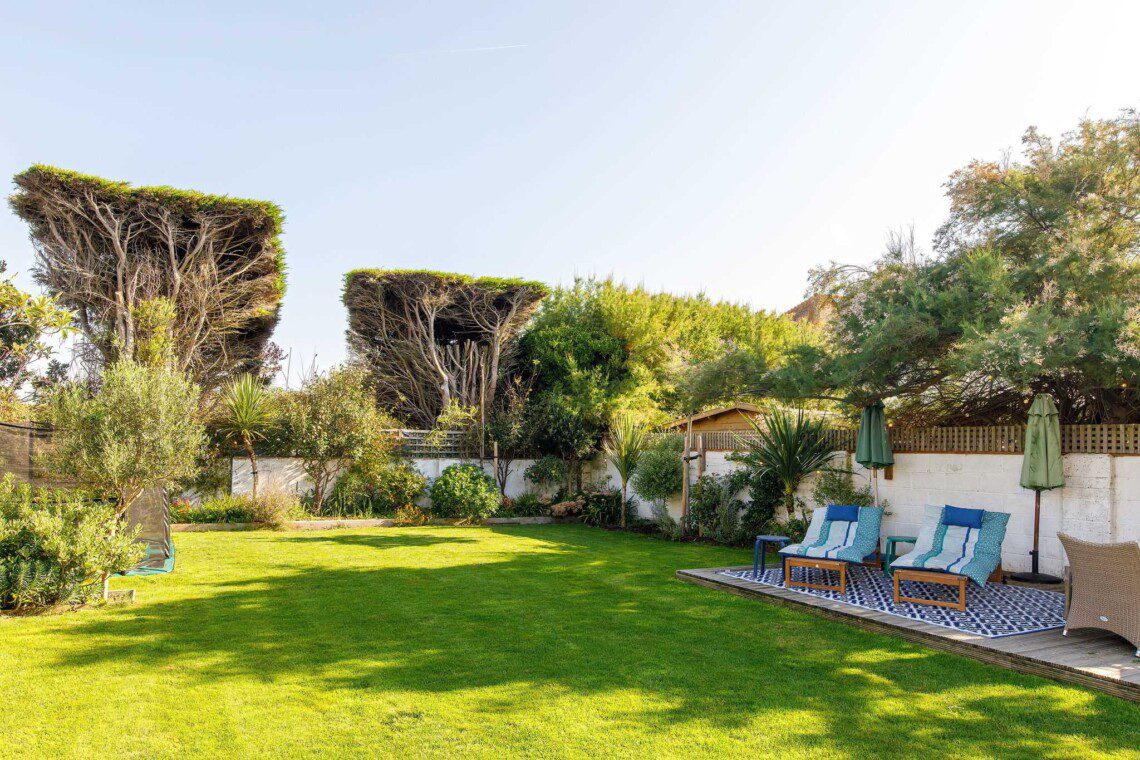 The good-sized garden with palms, borders and flower beds, has a large decked area with outdoor furniture and sun loungers. Enjoy long leisurely BBQs in the garden and quality family time playing games or simply relaxing. There is also an outdoor shower (with hot tap), perfect to rinse off after a surf or sea swim.