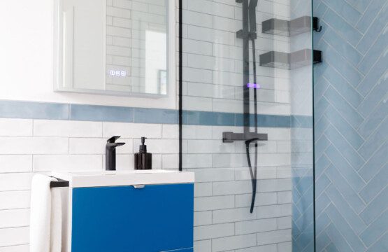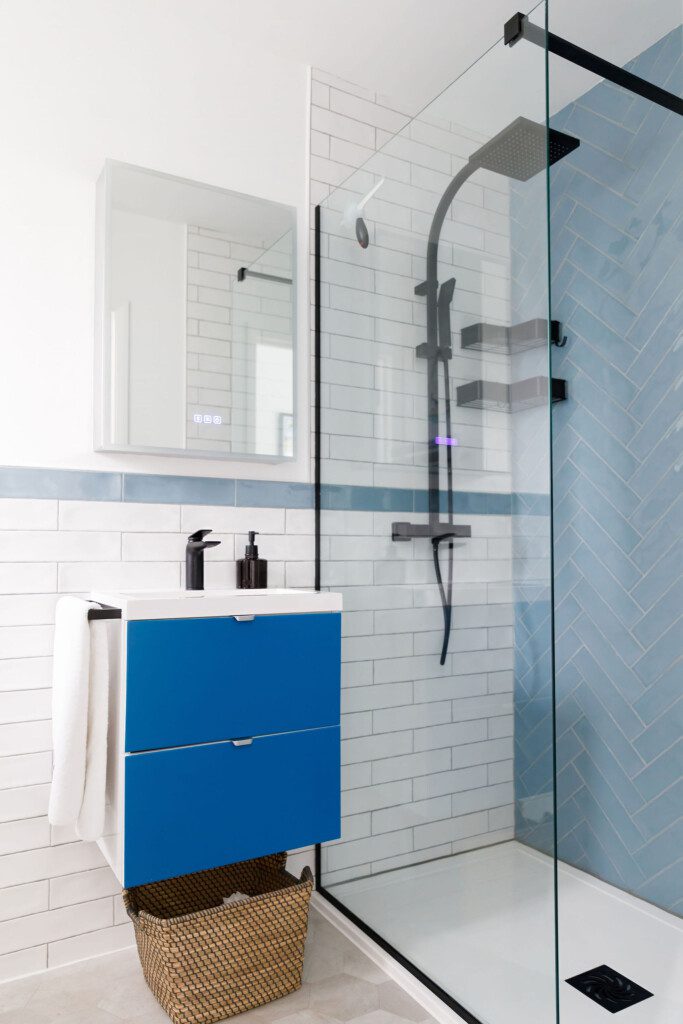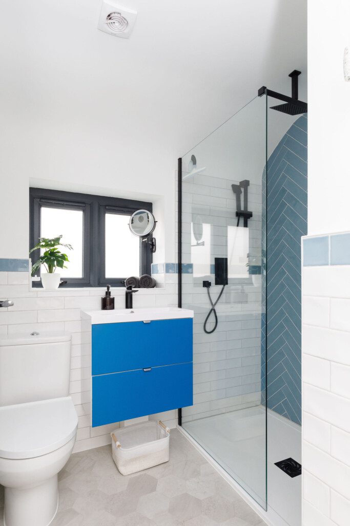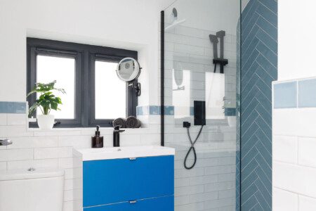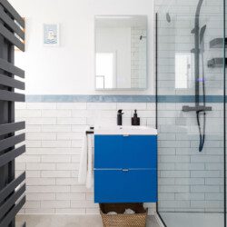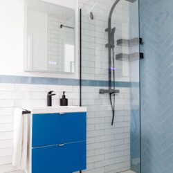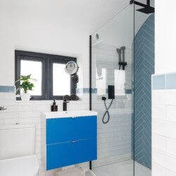 Downstairs, you’ll find a shower room with large walk-in shower, WC and sink.