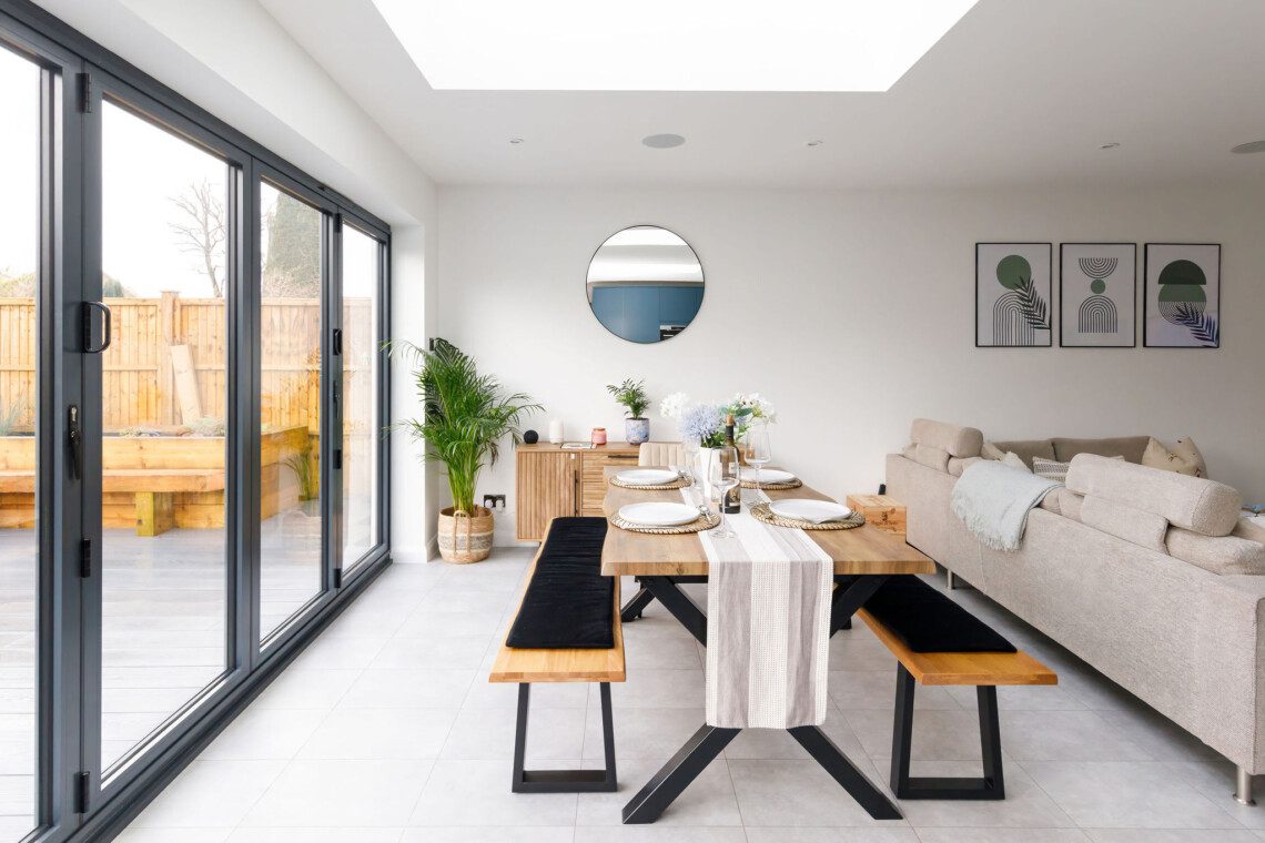 Open up the bi-fold doors to discover a wonderful outside area, with expansive decking, perfect for socialising and BBQs with loved ones. The outdoor dining furniture and built-in seating areas are ideal for soaking up the sunshine. Enjoy direct access to the canal for leisurely walks or paddle boarding.