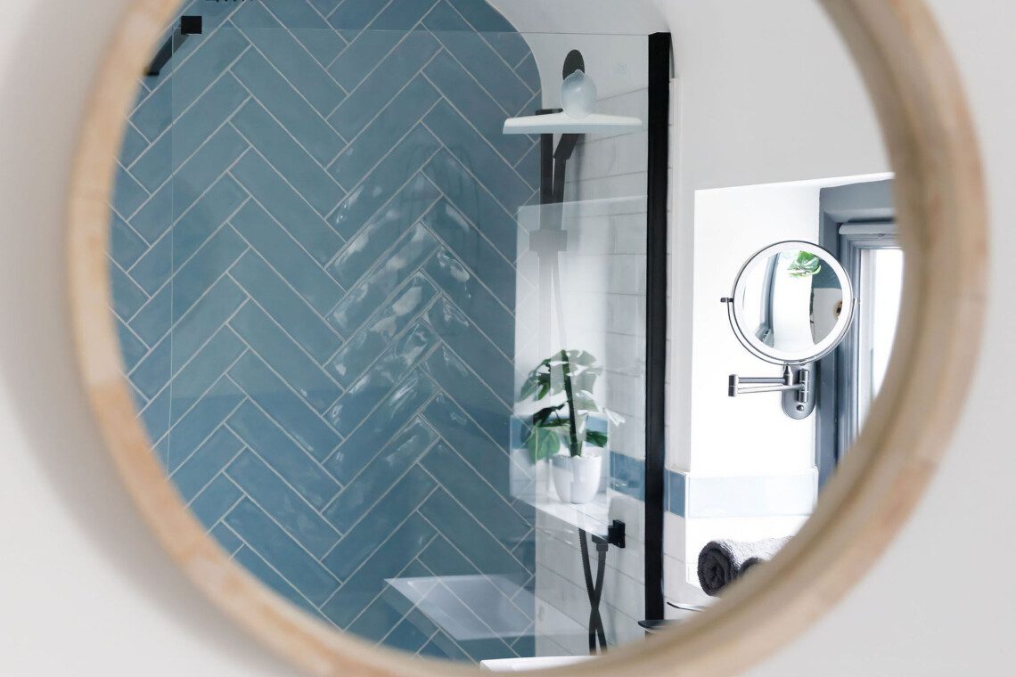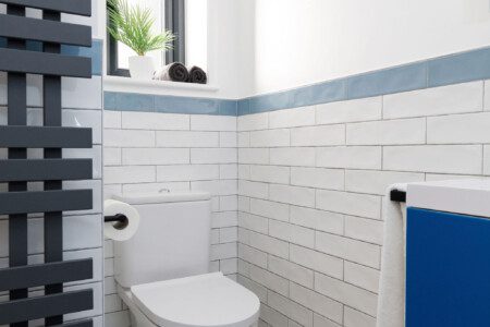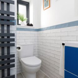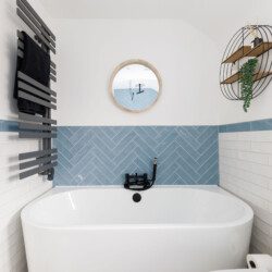 The home has a beautifully appointed bathroom with tranquil blue & white tiling. Enjoy the luxury of a large walk-in shower and separate freestanding bath for ultimate relaxation.
