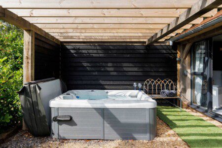 Enjoy the peaceful countryside surroundings from your own private courtyard with seating, hot tub and BBQ.