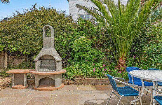 Garden: Step through glass doors to the private garden, with an alfresco dining area – perfect for summer evenings.