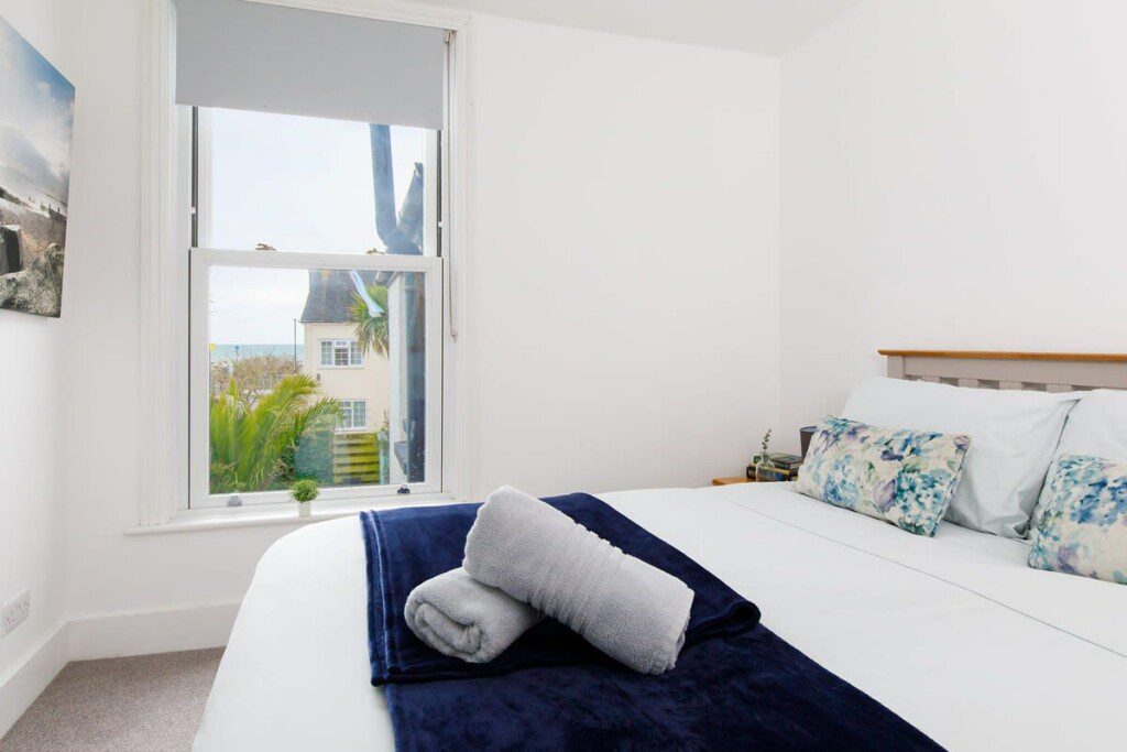 Bedroom 4: A tranquil retreat under the eaves, complete with a king-size bed and stunning sea views – the perfect spot to wake up to the sound of the waves.