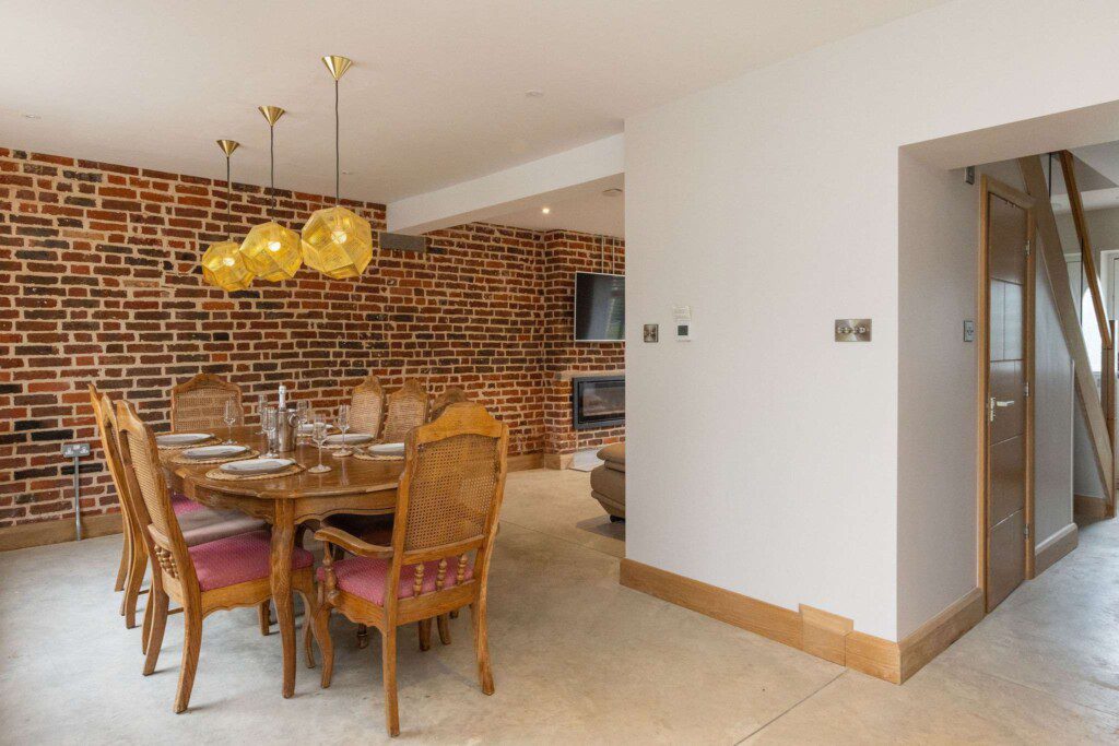 Enjoy open-plan living with a spacious lounge, dining area and fully equipped kitchen, all finished with exposed brick features, modern design and plenty of natural light. Outside, there’s off-road parking for up to 5 cars and a large garden with BBQ.