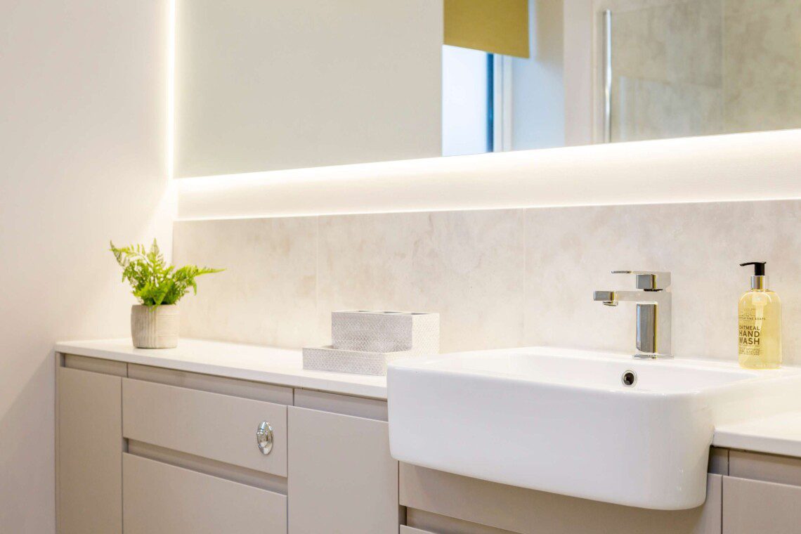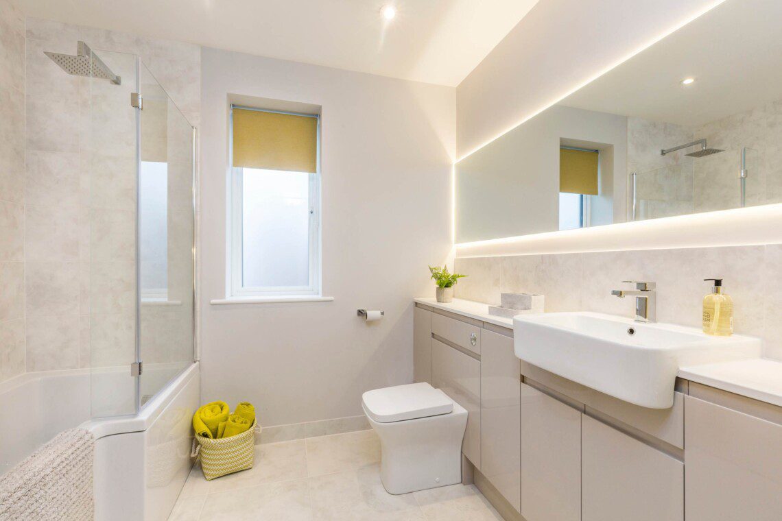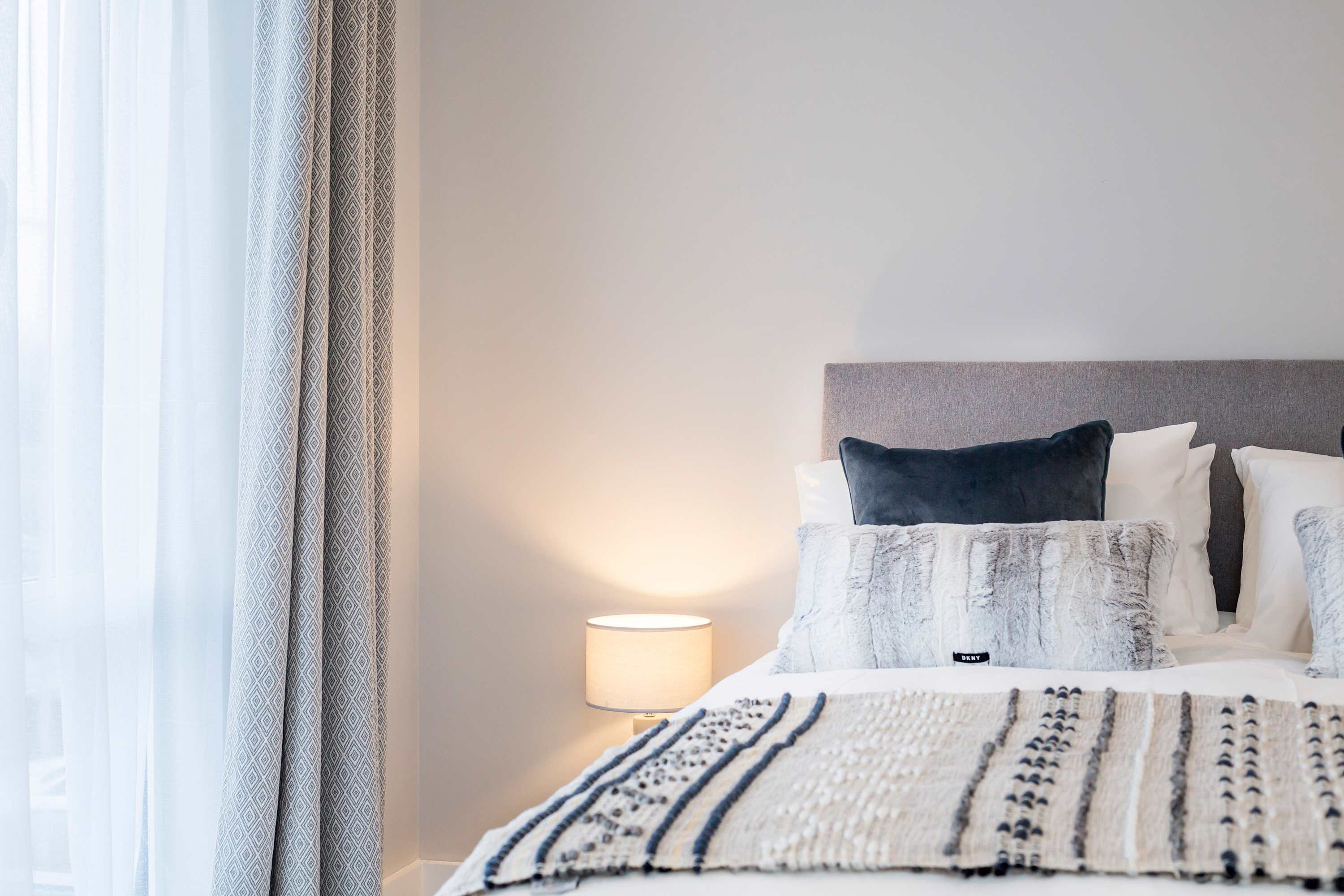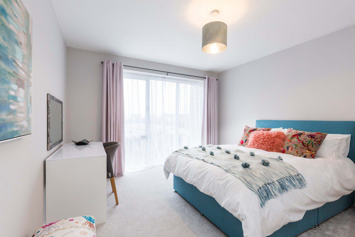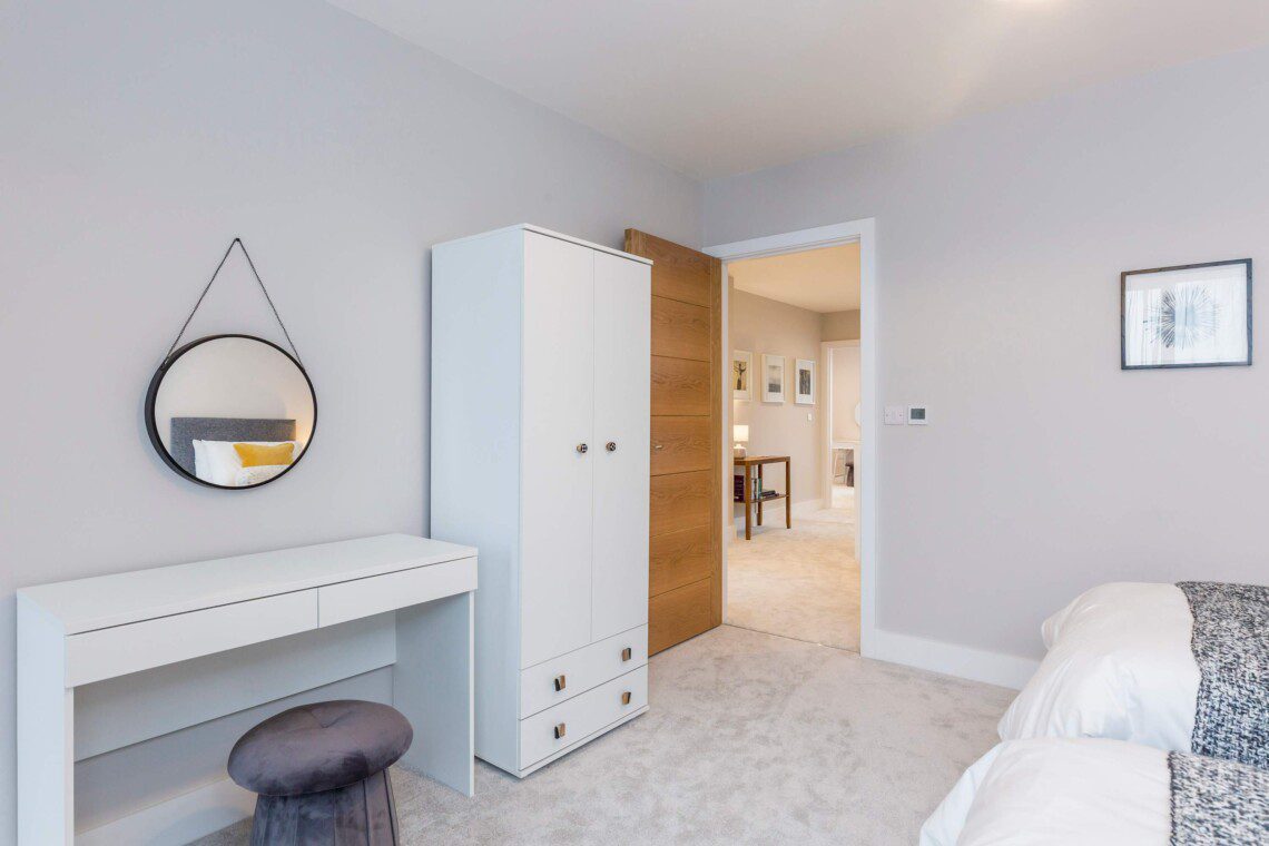 Here’s a home that’s in which every room demonstrates sleek and stylish interior design. There is a spacious open plan kitchen/family room. An open space with the ultra modern kitchen that’s fully equipped with everything you could need. There’s seating space of two different kinds too, a sofa to relax on, and then there’s the dining table where all guests can gather for meals, snacks or maybe work if you are staying in the area on business. Both the kitchen and family room have direct access to the garden at the rear of the property – so yet more space in which you can all socialise or just find a quiet spot to relax.