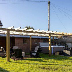The generous garden is made for relaxed downtime. Soak in the hot tub under the festoon lights, gather around the fire pit, or enjoy a drink on the patio as the sun goes down.
