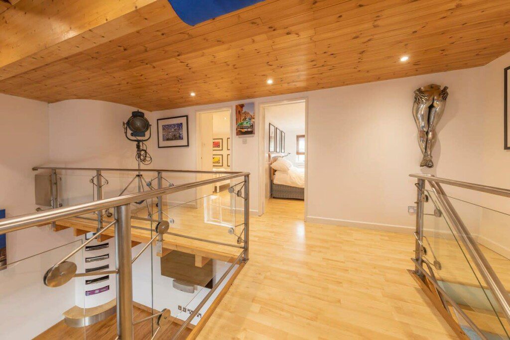 Recharge in one of the two serene upstairs bedrooms, both featuring sumptuous double beds. One bedroom extends the luxury with its own en-suite, ensuring privacy and ease. The landing morphs into a quiet study space, ideal for work or relaxation.
