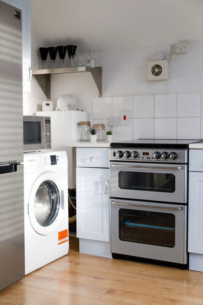 The apartment has a fully-equipped kitchen with all the modern appliances you would need to prepare breakfast, lunch and dinner. As well as pots, pans, crockery and glassware, you also have the following.
