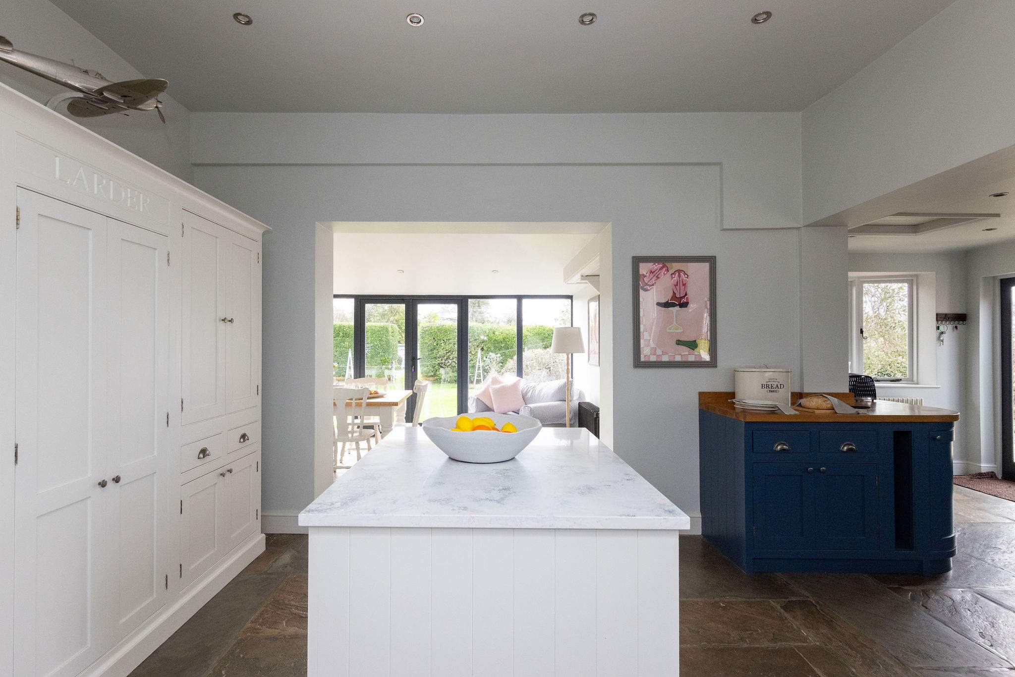 The heart of the main house is the open-plan kitchen/dining/living space, looking out to the garden.