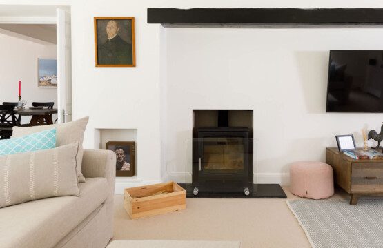 From here, the house flows into a spacious but cosy lounge area, with huge, dreamy sofas to sink into. The perfect space to unwind after eating.