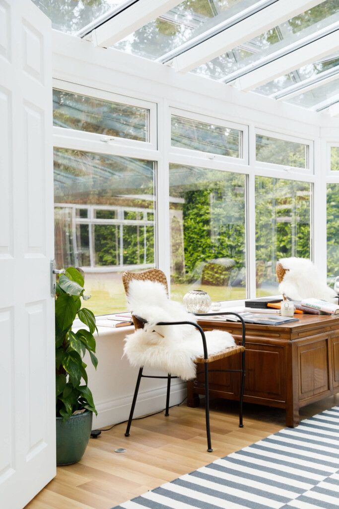 The large, light conservatory wraps around the west side of the property and is home to artwork, house plants and a variety of seating. Make yourself a drink or lose yourself in a good book in this stylish and sunny space.