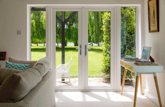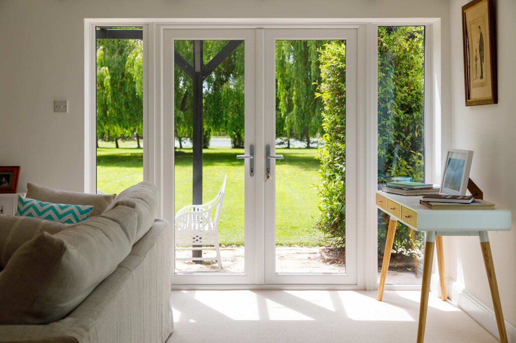 On warm days, bi-fold patio doors open up to the BBQ terrace from the conservatory.