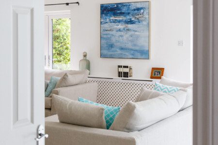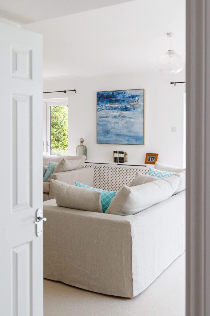 From here, the house flows into a spacious but cosy lounge area, with huge, dreamy sofas to sink into. The perfect space to unwind after eating.