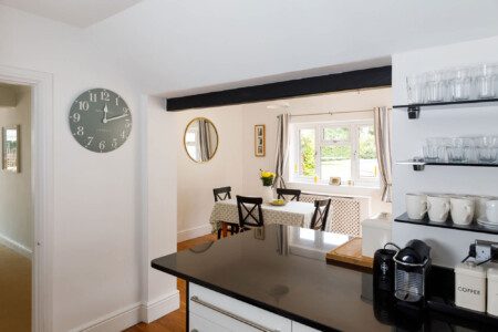 Enjoy long evening meals catching up with friends and family in an inviting dining space, which conveniently leads on from the kitchen. The dining table comfortable seats up to 10 people.